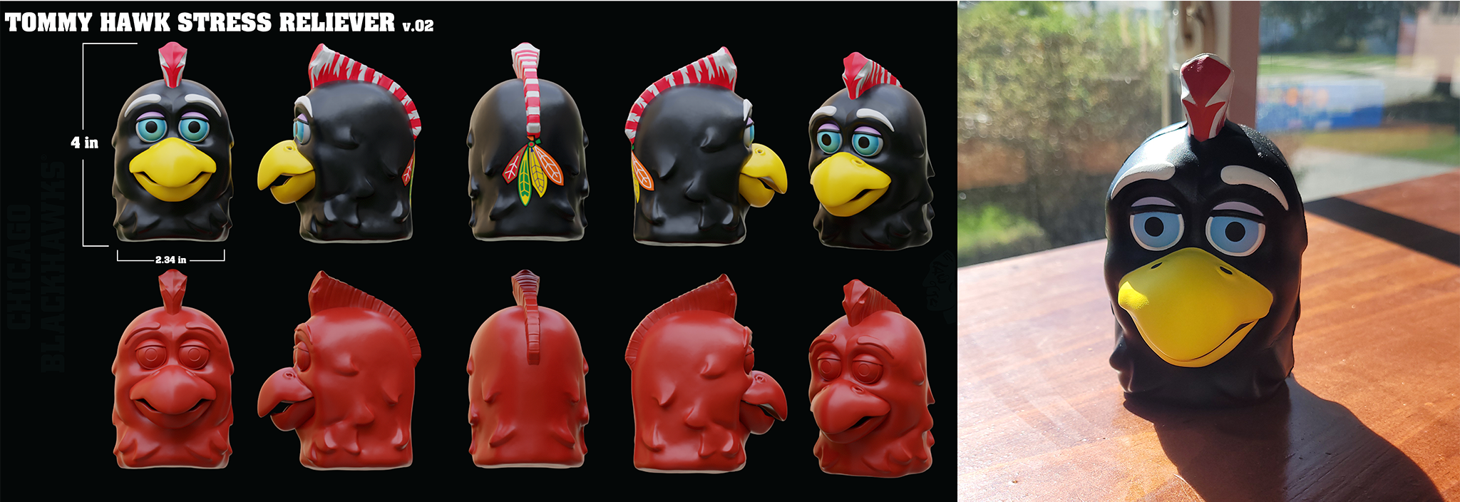 Tommy Hawk Stress toy that was sculpted in Zbrush and sent for manufacture for a game day giveaway for the Chicago Blackhawks